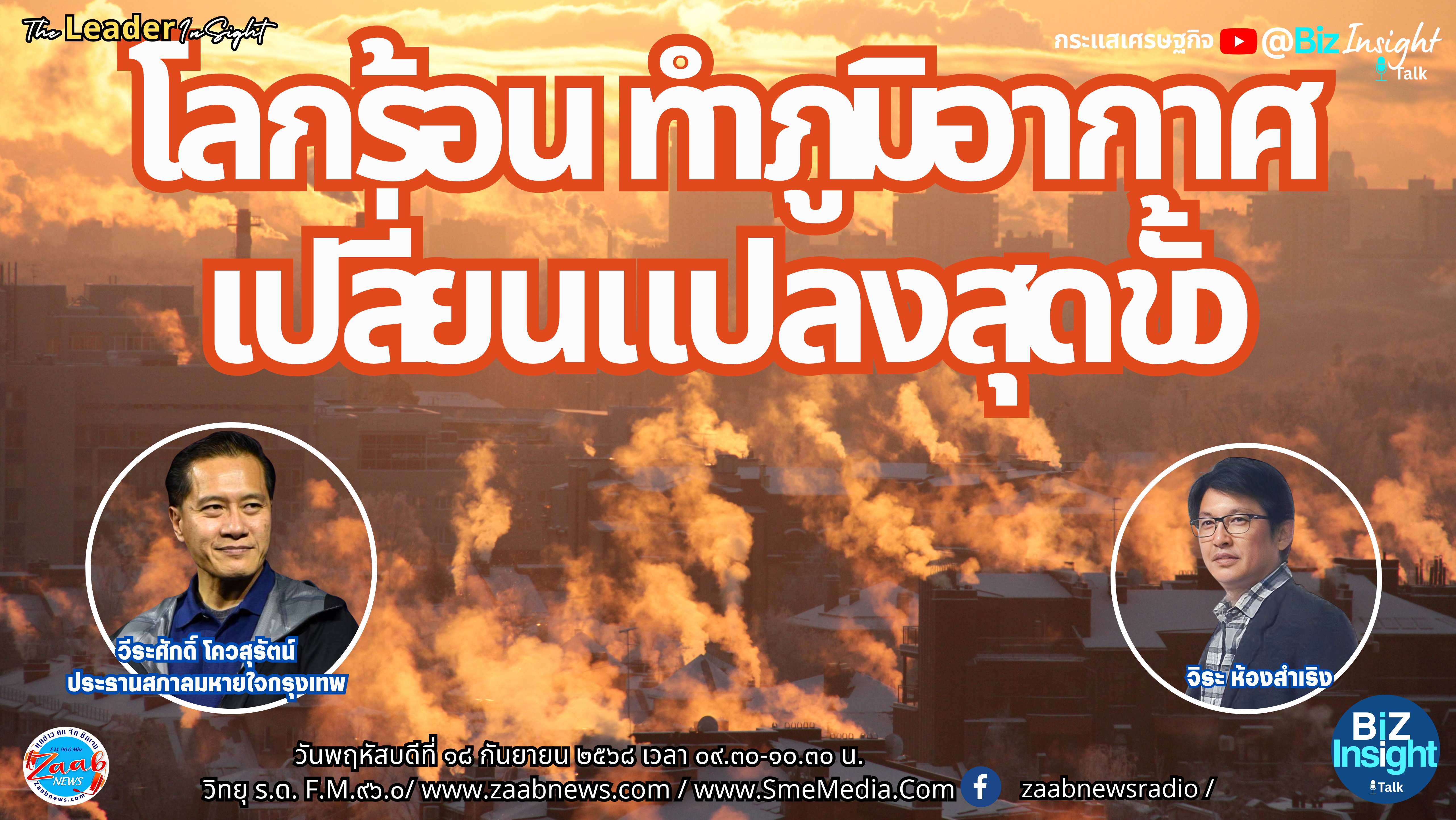 รายการ The Leader Insight โลกร้อน ทำภูมิอากาศเปลี่ยนแปลงสุดขั้ว โดย วีระศักดิ์ โควสุรัตน์ ประธานสภาลมหายใจกรุงเทพวันพฤหัสบดีที่ ๑๘ กันยายน ๒๕๖๘ เวลา ๐๙.๓๐-๑๐.๓๐ น. ดำเนินรายการโดย จิระ ห้องสำเริง
