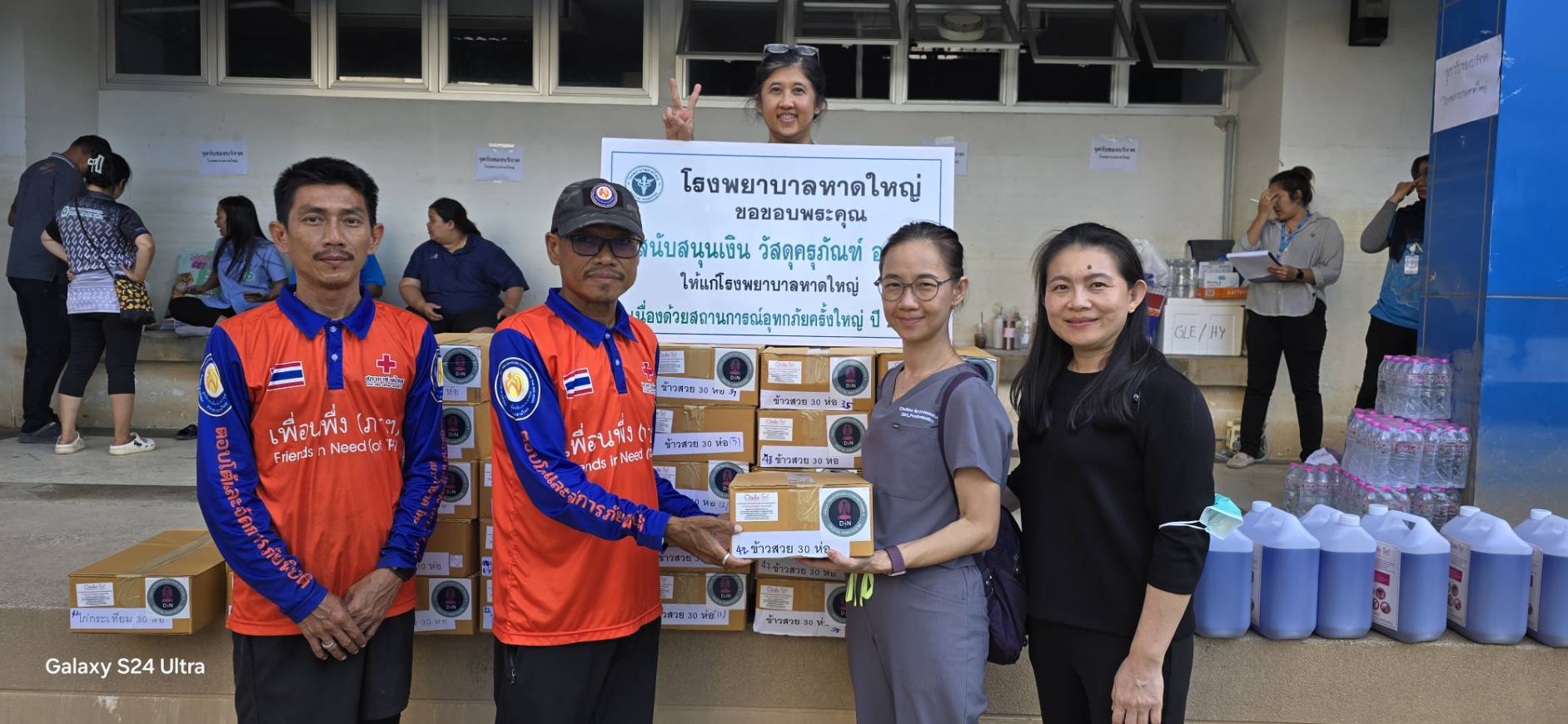 3 ธค. 2568 ศูนย์ประสานงานชั่วคราว มูลนิธิอาสาเพื่อนพึ่ง (ภาฯ) ยามยาก สภากาชาดไทย ดำเนินการส่งมอบสิ่งของบรรเทาทุกข์เพื่อสนับสนุนการฟื้นฟู โรงพยาบาลหาดใหญ่ ซึ่งได้รับผลกระทบจากสถานการณ์น้ำท่วม สิ่งของทั้งหมดได้รับการสนับสนุนจาก คณะวิทยาศาสตร์ จุฬาลงกรณ์มหาวิทยาลัย ภายใต้โครงการ “จุฬาฯ • เพื่อนพึ่ง (ภาฯ) • ช่อง 7HD รวมใจ ฝ่าภัยน้ำท่วมใต้” และจาก บริษัท ซิตี้ เมดิคอล ซัพพลาย จำกัด โดยมี นพ.วิโรจน์ โยมเมือง ผู้อำนวยการโรงพยาบาลหาดใหญ่ เป็นผู้แทนรับมอบสิ่งของ
