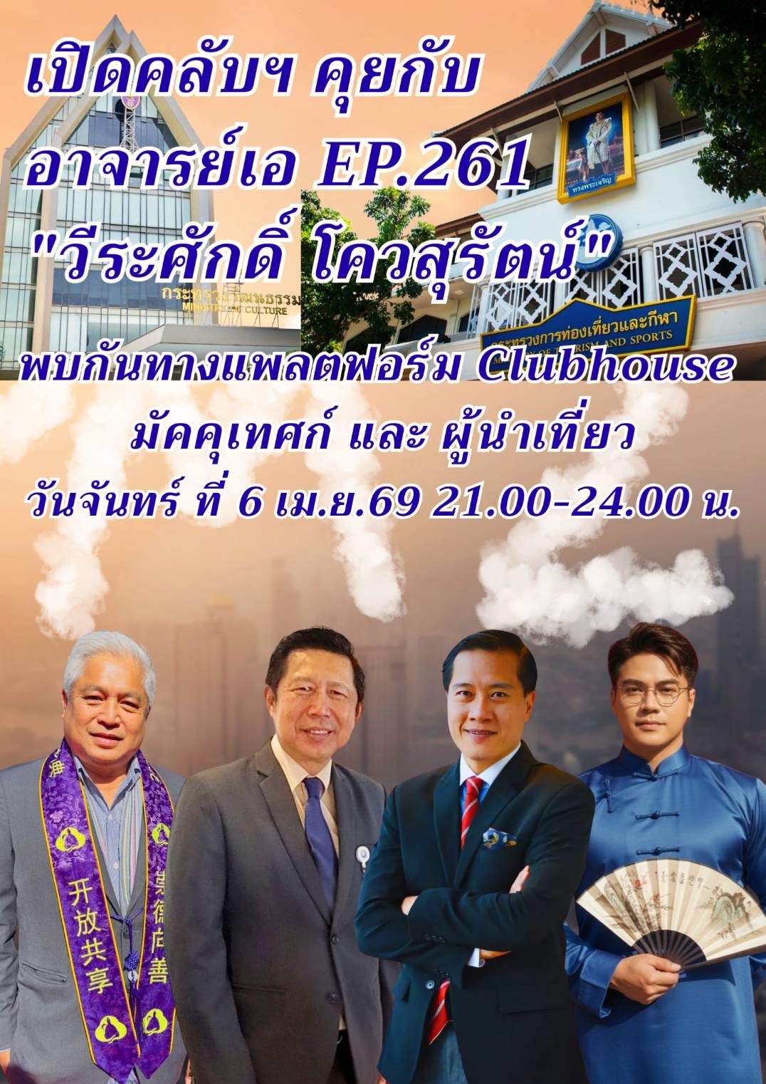 ร่วมรับฟังได้ทางแพลตฟอร์ม Clubhouse มัคคุเทศก์และผู้นำเที่ยว วันจันทร์ ที่ 6 เมษายน 2569 เวลา 21.00-24.00 น.