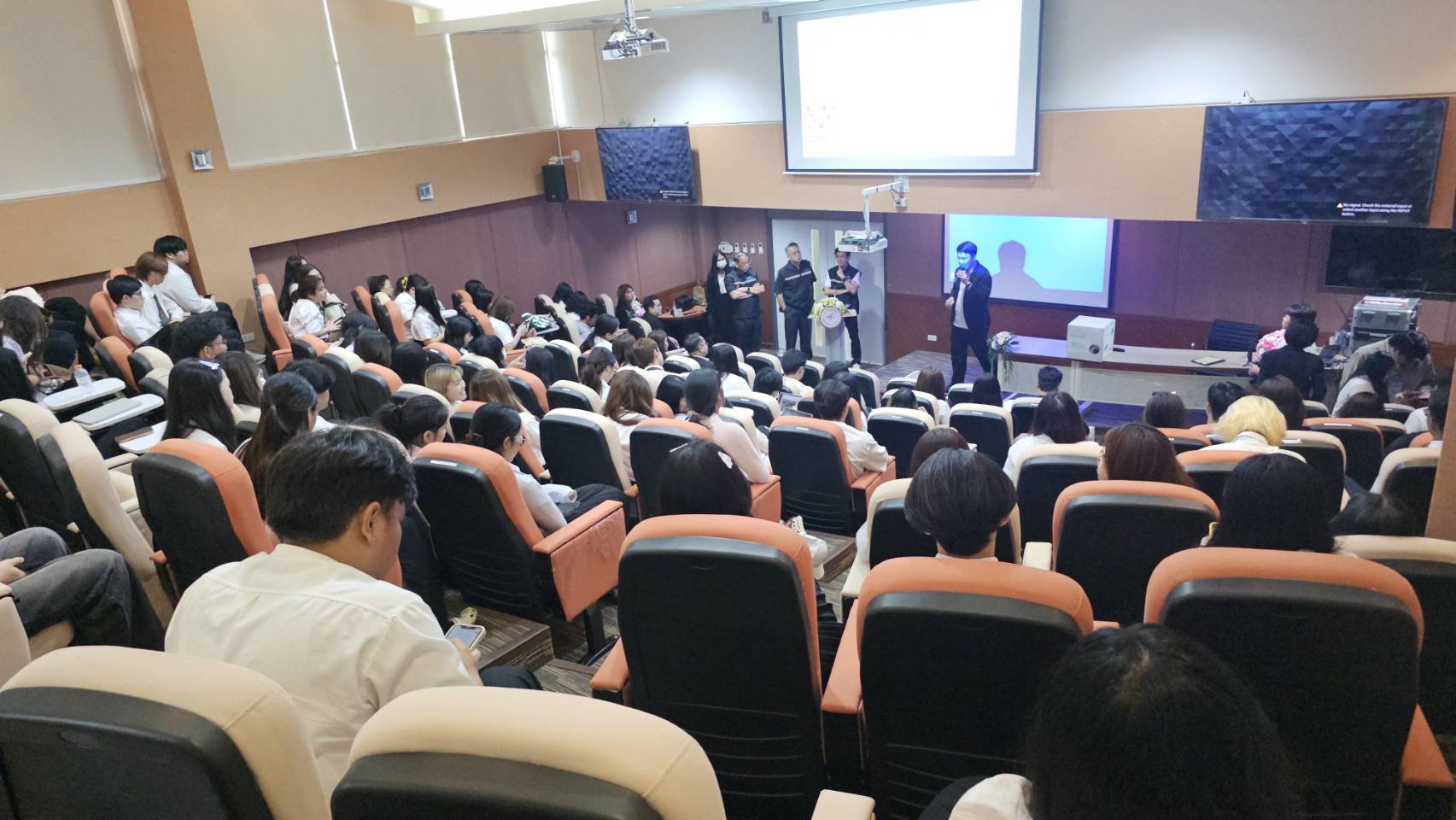เช้านี้มาแลกเปลี่ยนเรียนรู้เรื่อง อากาศสะอาด:สิทธิพื้นฐานของทุกคน ที่ มศว ประสานมิตร ตื่นเต้นกับ มศว ที่เปลี่ยนไป นักศึกษา กลุ่มจิตอาสา ตื่นตัว คุยกับ นศที่มากันแต่เช้า เป็น ปี 1 / 2 / 3 คนจัดเป็น ปี 2 ทุกคนใส่ใจ สนใจ อยากมาเพราะ คิด และเชื่อว่า เรื่องอากาศเป็นเรื่องของทุกคน ..สนใจมากันเต็มห้อง จริงๆ นั่งรอก่อนเริ่มงาน จากคณะวิทย์ สังคม ธุรกิจ …. ประทับใจในความกระตือรือล้นของ นศ มศวทประสานมิตร มาก ได้โอกาส กราบ อนุสาวรีย์ มล ปิ่น มาลากุล ปูชนียบึคคลด้านการศึกษาประเทศไทย