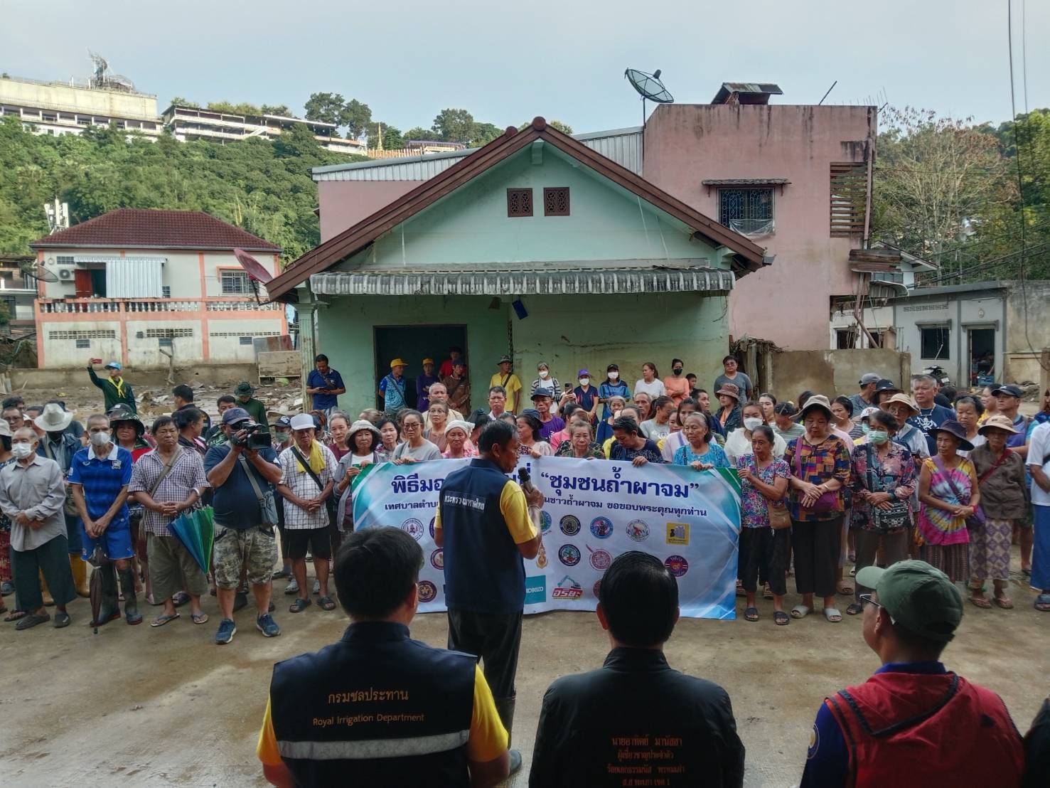 เวลา 17:00 น. ทุกหน่วยงานที่มาร่วมช่วยอุทกภัยน้ำท่วมในชุมชนถ้ำผาจมร่วมส่งคืนพื้นที่ให้กับชาวบ้าน ตามรายชื่อด้านล่างนี้