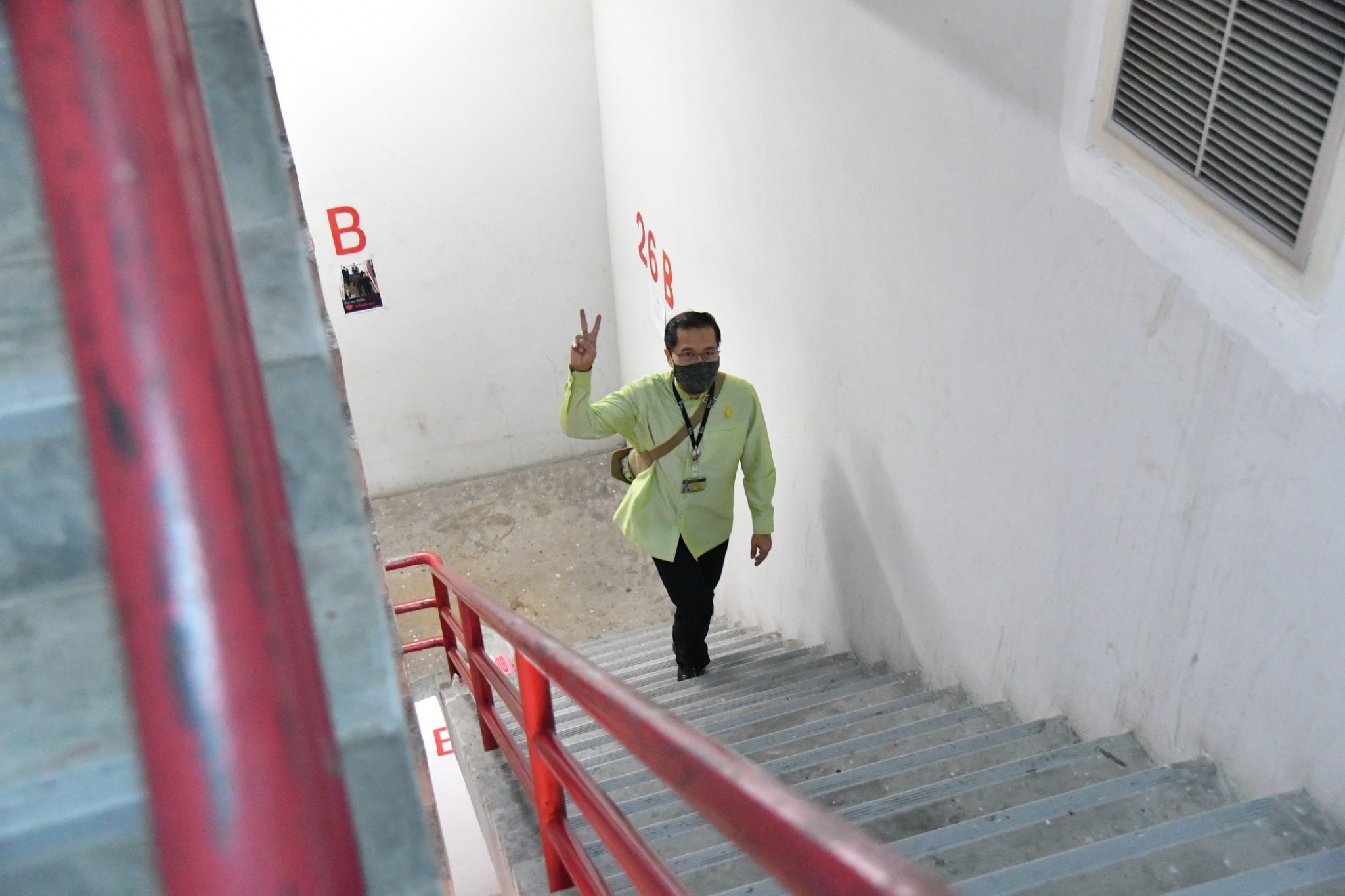 การเดินบันไดขึ้นอาคารสูง ที่ออกแบบให้มีอากาศไหลเวียนดี..สามารถเป็นการฝึกกำลังขาได้ดีมากครับ 27 ชั้นรวด.. ก้าวไปเรื่อย ๆ ใช้เวลาราวไม่เกิน 12 นาที.. ขึ้นไปถึงแล้วล้างมือไม้ เหงื่อยังไม่มี แค่ตัวอุ่น ๆ สักหน่อย ไม่ต้องเสียเวลาเข้าแถวคอยคิวยาวในการขึ้นลิฟต์ด้วยครับ