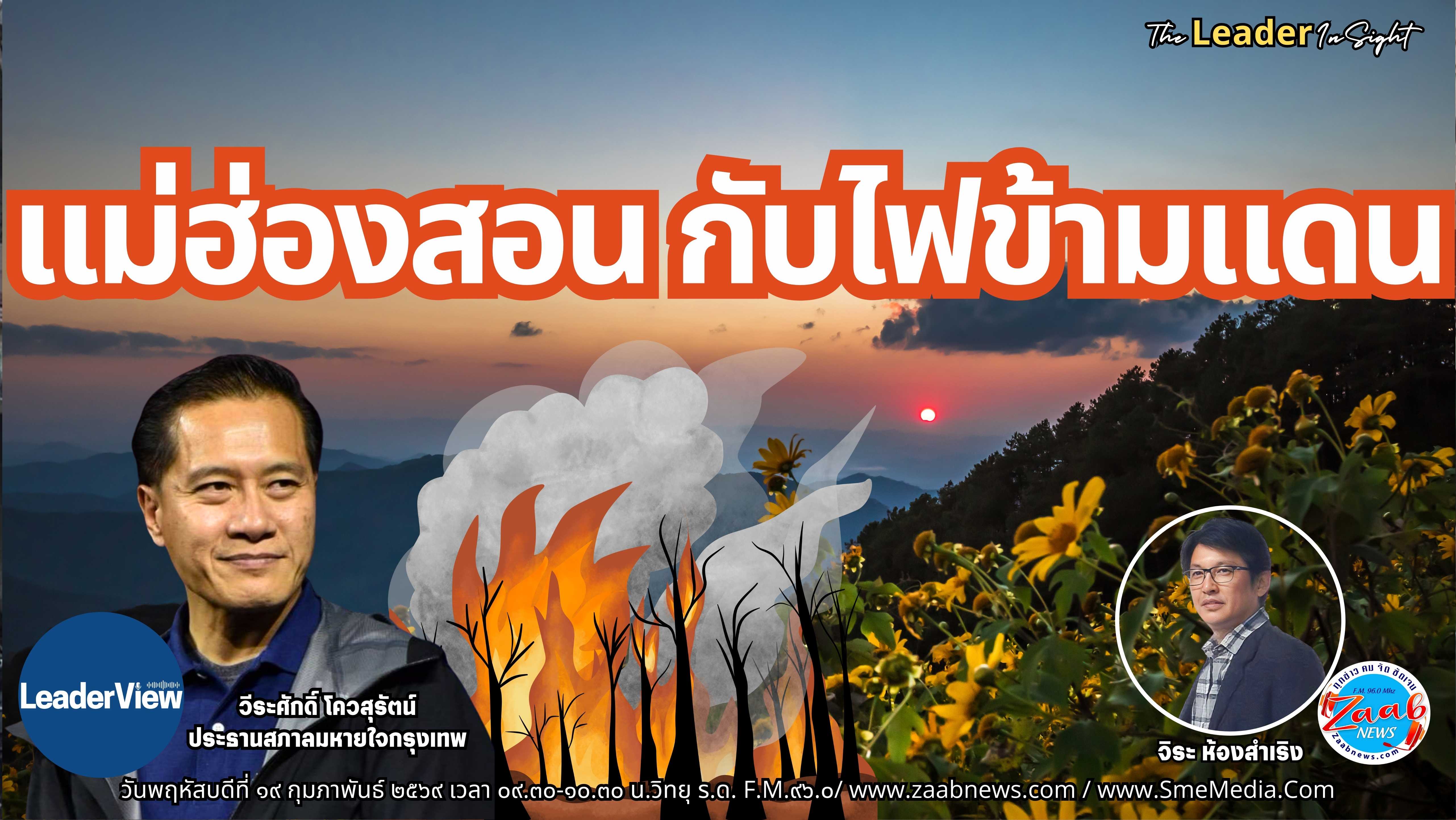 รายการ The Leader Insight แม่ฮ่องสอน กับไฟข้ามแดน โดย วีระศักดิ์ โควสุรัตน์ ประธานสภาลมหายใจกรุงเทพวันพฤหัสบดีที่ ๑๙ กุมภาพันธ์ ๒๕๖๙ เวลา ๐๙.๓๐-๑๐.๓๐ น. ดำเนินรายการโดย จิระ ห้องสำเริง