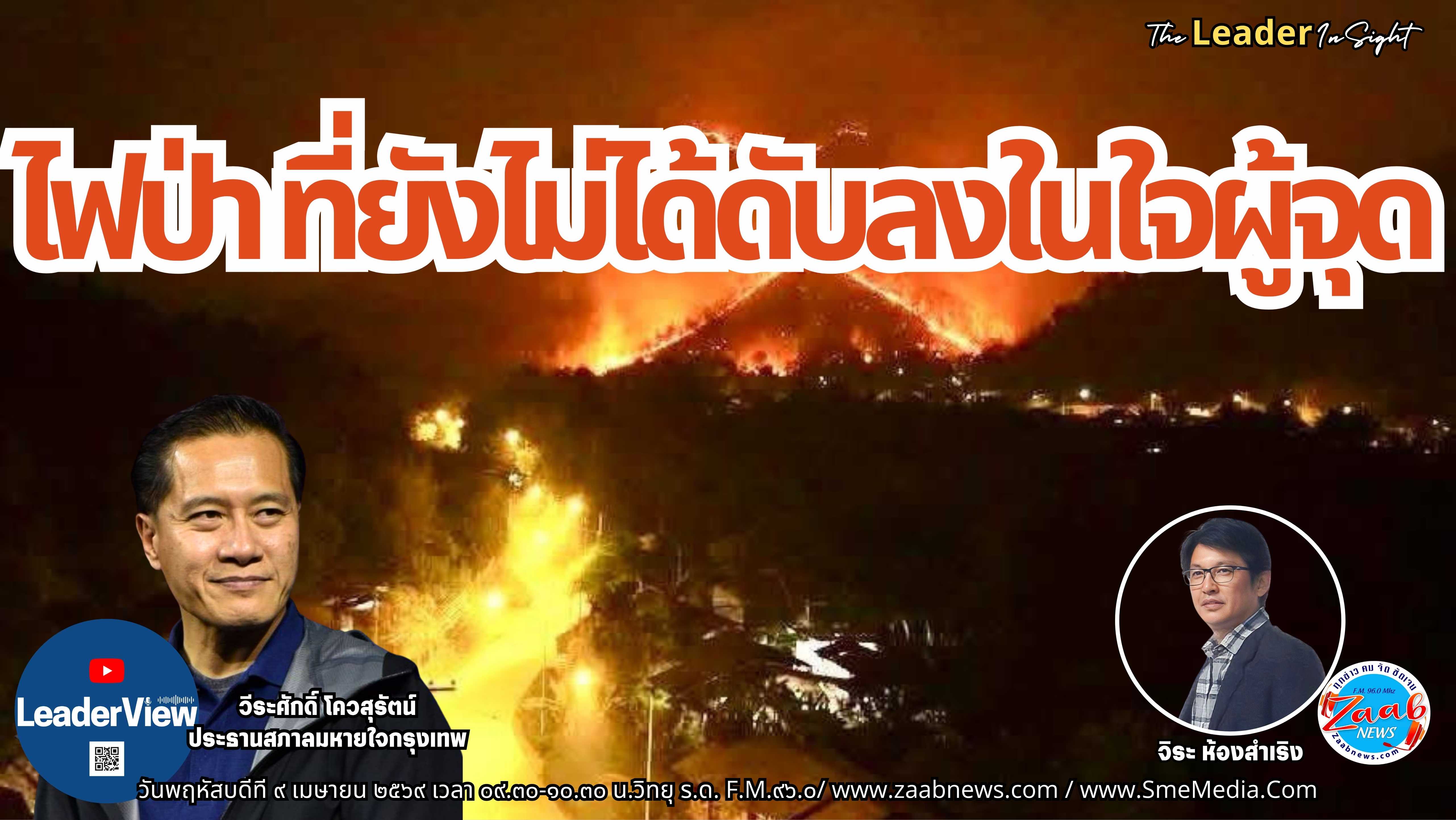 รายการ The Leader Insight ไฟป่า : ที่ยังไม่ได้ดับลงในใจผู้จุด โดย วีระศักดิ์ โควสุรัตน์ ประธานสภาลมหายใจกรุงเทพ รายการ The Leader Insight วันพฤหัสบดีที่ ๙ เมษายน ๒๕๖๙ เวลา ๐๙.๓๐-๑๐.๓๐ น.