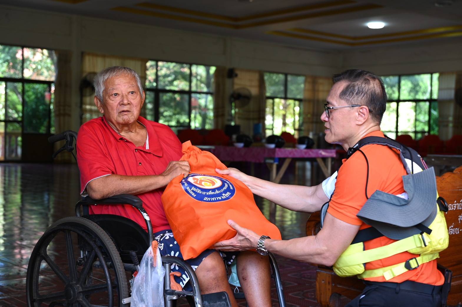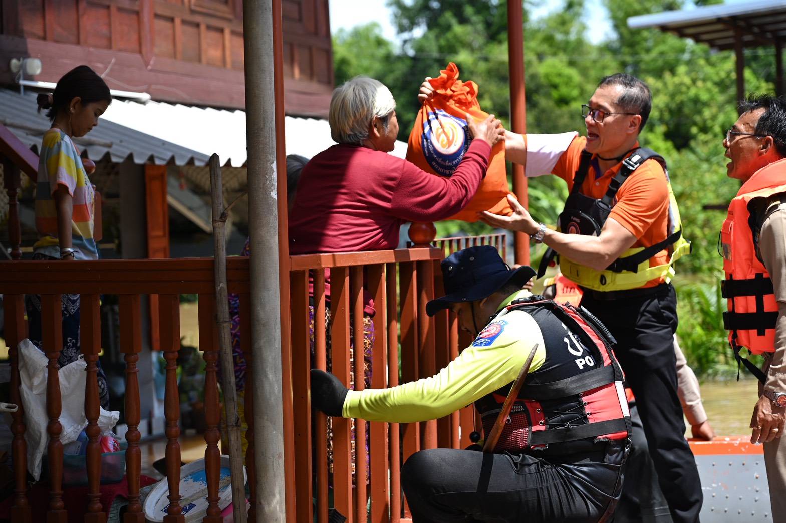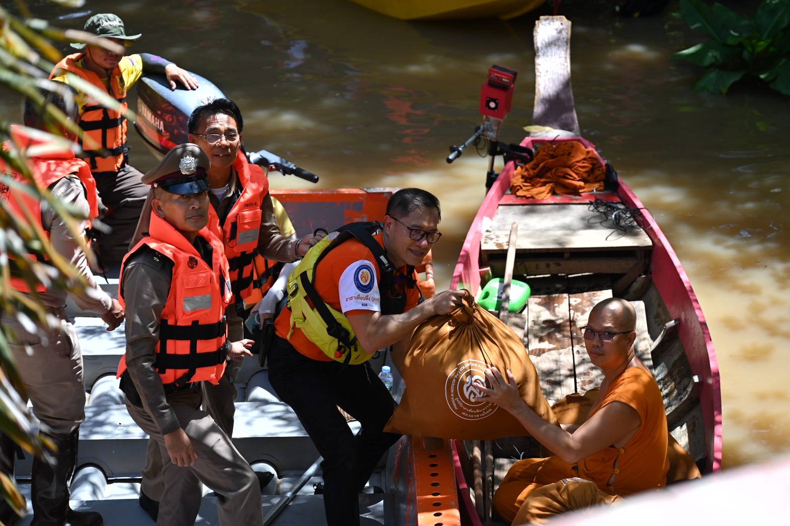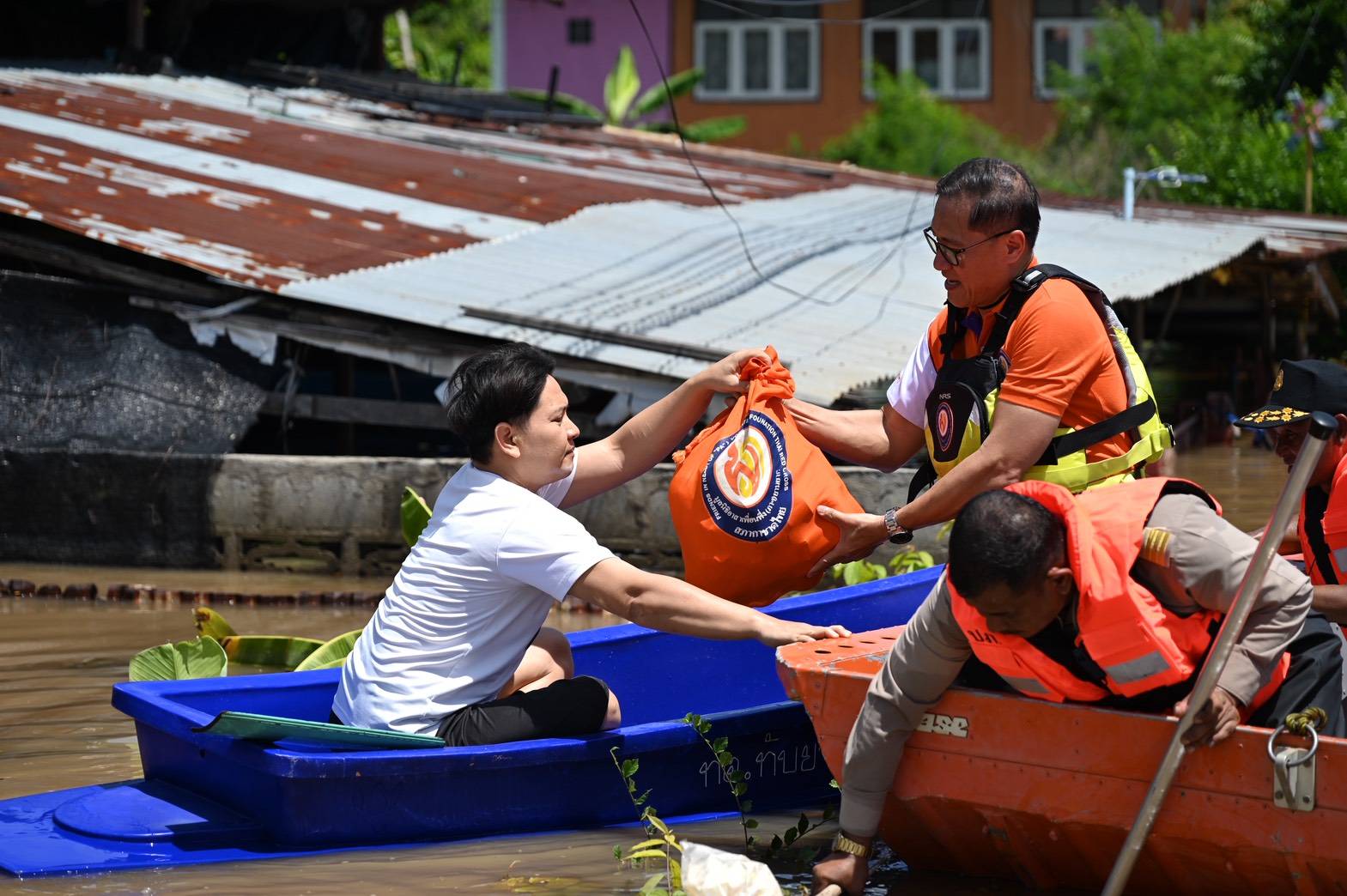 ลงเรือเชิญถุงยังชีพพระราชทานไปชุมชนที่โดนน้ำท่วมมานานนับเดือน