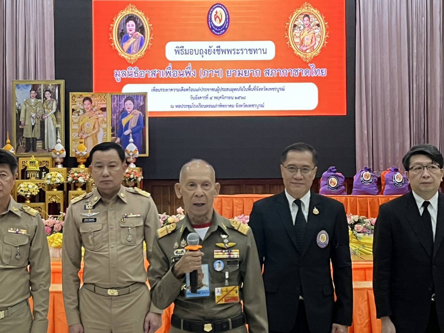 พลอากาศเอก สมคิด สุขบาง กรมวังผู้ใหญ่ประจำพระองค์สมเด็จพระเจ้าลูกเธอ เจ้าฟ้าพัชรกิติยาภา นเรนทิราเทพยวดี กรมหลวงราชสาริณีสิริพัชร มหาวัชรราชธิดา และรองประธานกรรมการมูลนิธิอาสาเพื่อนพึ่ง (ภาฯ) ยามยาก สภากาชาดไทย เป็นประธานในพิธี พร้อมด้วย นายวีระศักดิ์ โควสุรัตน์ กรรมการและเลขาธิการมูลนิธิฯ นายสันติ สาทิพย์พงษ์ รักษาการหัวหน้าสำนักงานเลขาธิการมูลนิธิฯ