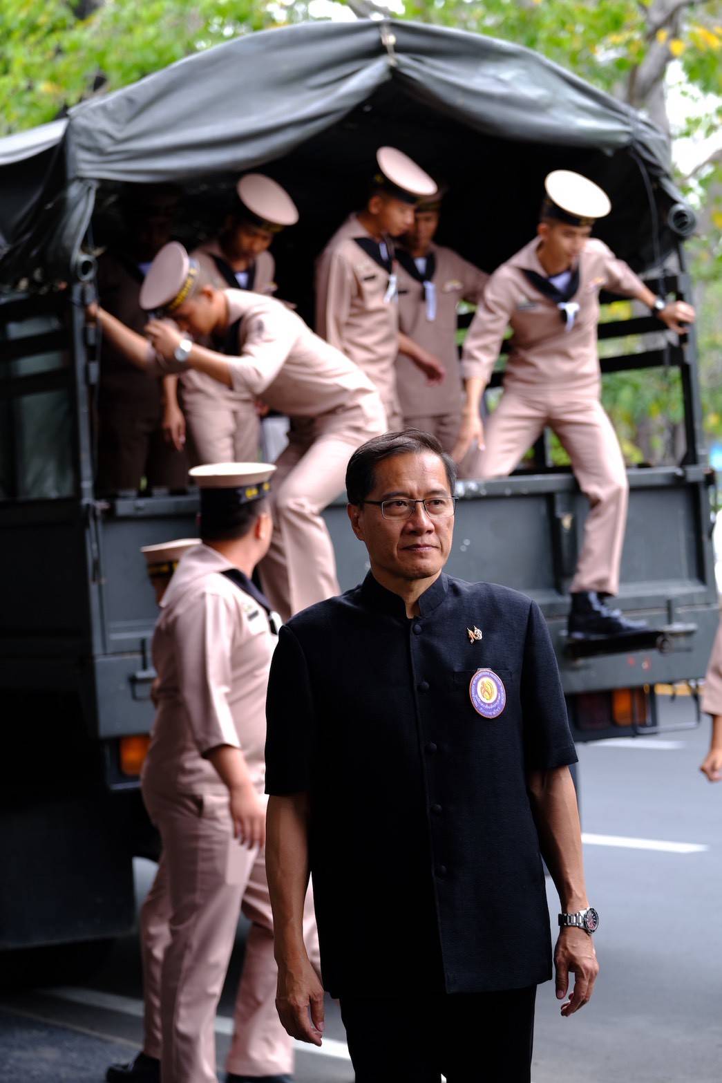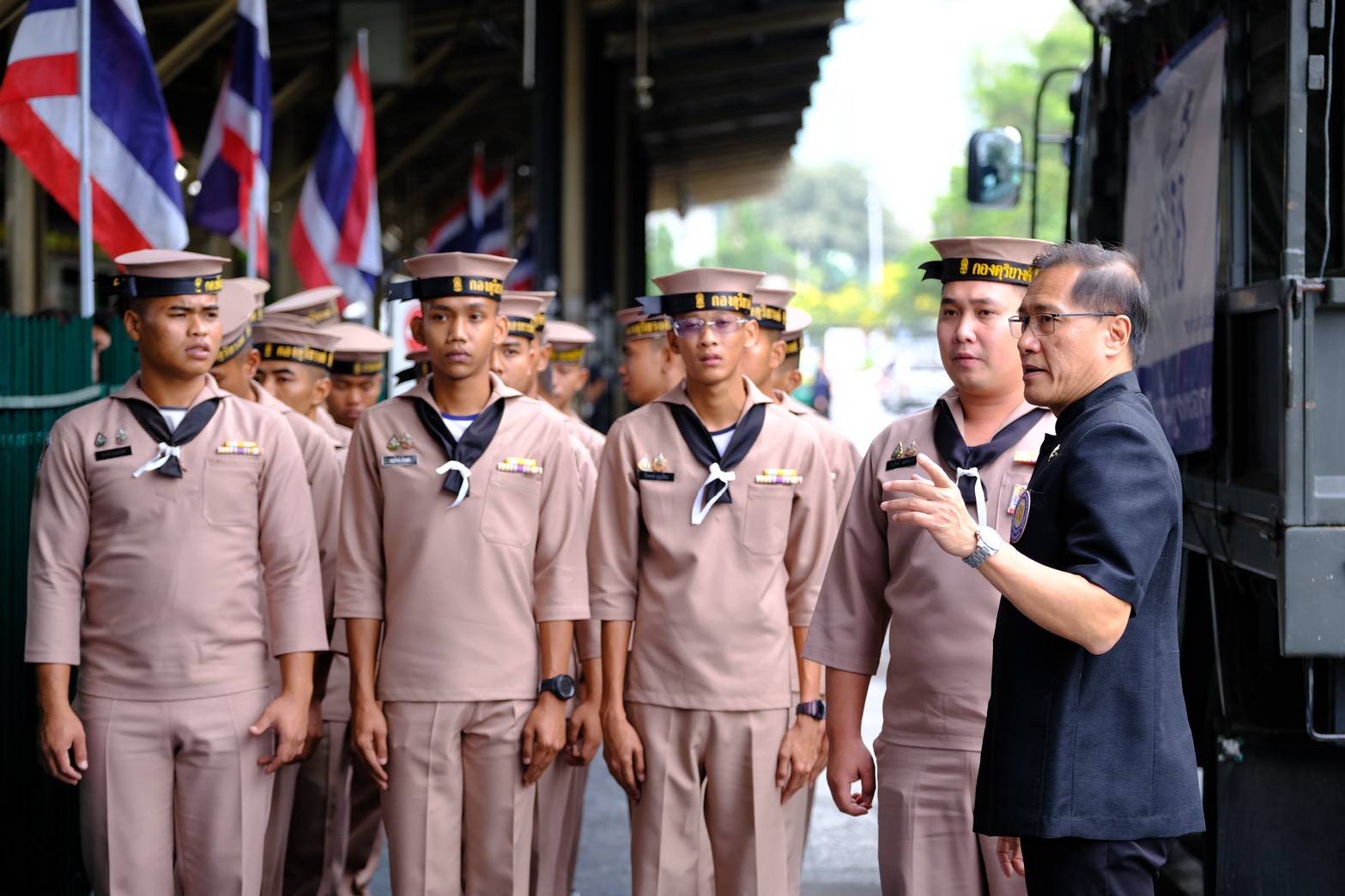 การแต่งกาย ชุดดำสุภาพ / หรือท่านที่มีผ้าพันคอจิตอาสา หมวกฟ้า พระราชทานก็สามารถแต่งได้