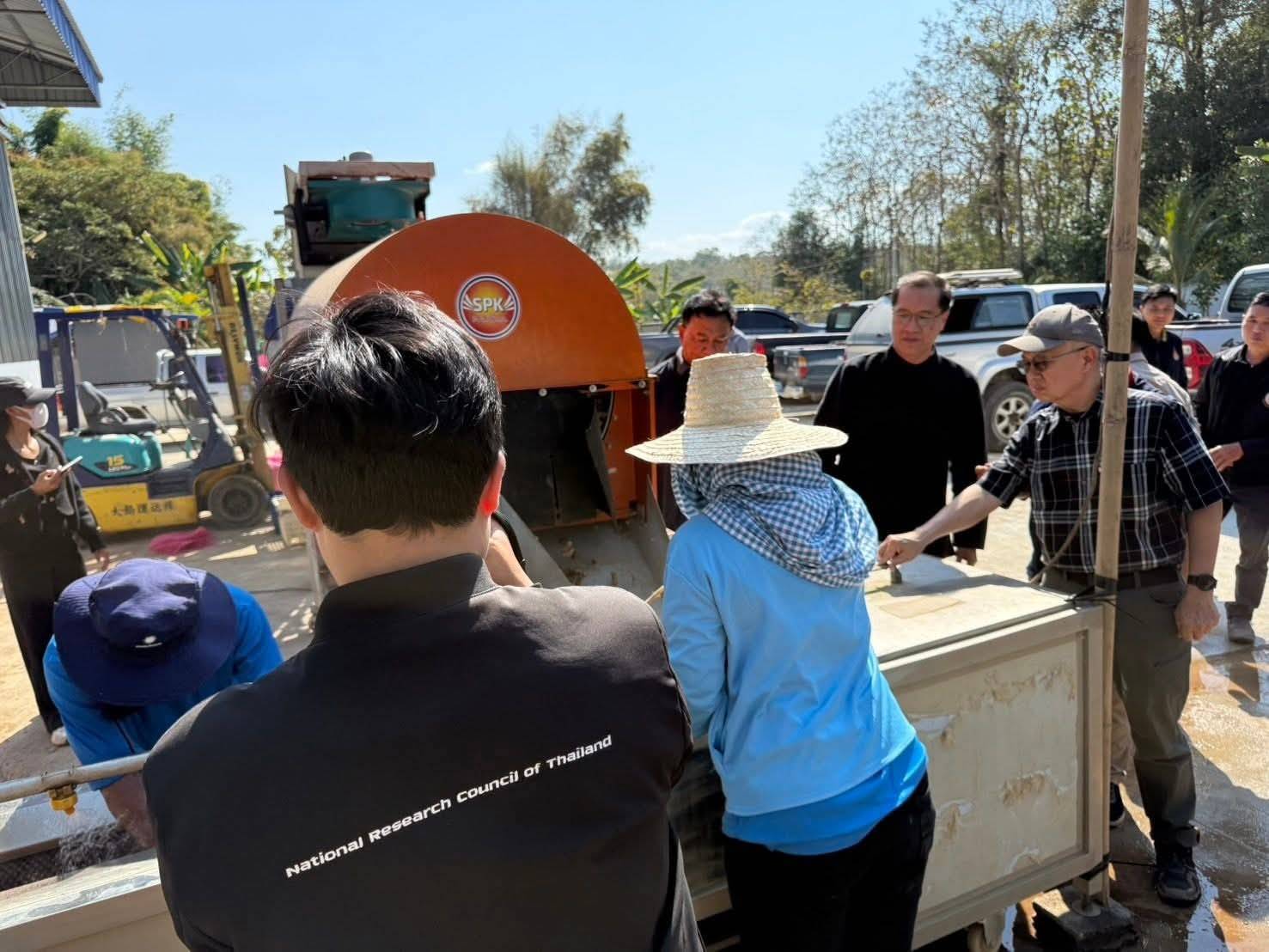 คณะติดตามประกอบด้วย ท่านวีระศักดิ์ โควสุรัตน์ ประธานสภาลมหายใจกรุงเทพฯ กรรมการบริหารมูลนิธิอาสาเพื่อนพึ่ง (ภาฯ) ยามยาก สภากาชาดไทย และอดีตรัฐมนตรีว่าการกระทรวงการท่องเที่ยวและกีฬา และท่านประลอง ดำรงค์ไทย ผู้อำนวยการแผนงานประเทศไทยปลอดภัยจาก PM2.5 (เป้าหมาย 8 จังหวัดภาคเหนือตอนบน) และอดีตอธิบดีกรมควบคุมมลพิษ(คพ.) กระทรวงทรัพยากรธรรมชาติและสิ่งแวดล้อม(ทส.) พร้อมทีมผู้บริหารจาก วช. ลงพื้นที่ร่วมกับ ผศ.ดร.เอกชัย ดวงใจ หัวหน้าโครงการจากมหาวิทยาลัยเทคโนโลยีราชมงคลล้านนา น่าน และภาคีเครือข่ายในพื้นที่อำเภอเวียงสา ซึ่งประกอบด้วย ผู้อำนวยการส่วนอุทยานแห่งชาติ สำนักบริหารพื้นที่อนุรักษ์ที่ 11 (พิษณุโลก) บริษัท ไฟฟ้าหงสา จำกัด กำนัน ตำบลน้ำมวบ นายกองค์การบริหารส่วนตำบลน้ำมวบ นายกองค์การบริหารส่วนตำบลส้าน วิสาหกิจชุมชน "เก้าเห็ดเป็นยา จังหวัดน่าน" สถาบันวิจัยและพัฒนาพื้นที่สูง (องค์การมหาชน) พื้นที่น่าน สถานีพัฒนาที่ดินจังหวัดน่าน หจก.แคชชิว นัท ริช กรุ๊ป(ไทยแลนด์) และสหกรณ์จังหวัดน่าน