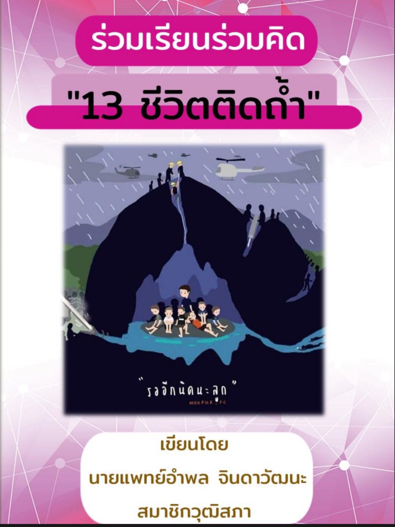 ขอแนะนำหนังสือดิจิทัลเรื่อง ''ร่วมเรียนร่วมคิด 13 ชีวิตติดถ้ำ'' เขียนโดย นพ.อำพล จินดาวัฒนะ คำนำพิเศษโดย คุณวีระศักดิ์ โควสุรัตน์