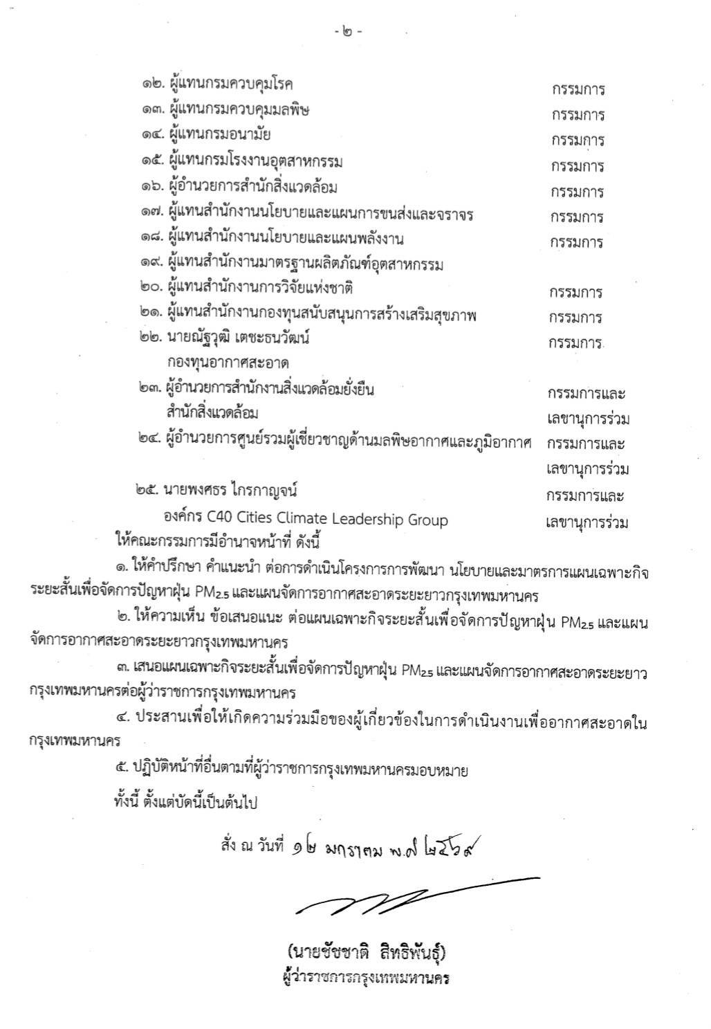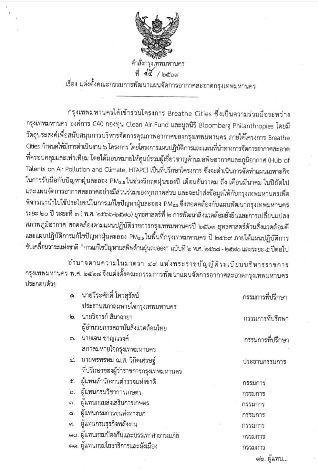เรื่อง แต่งตั้งคณะกรรมการพัฒนาแผนจัดการอากาศสะอาดกรุงเทพมหาบคร